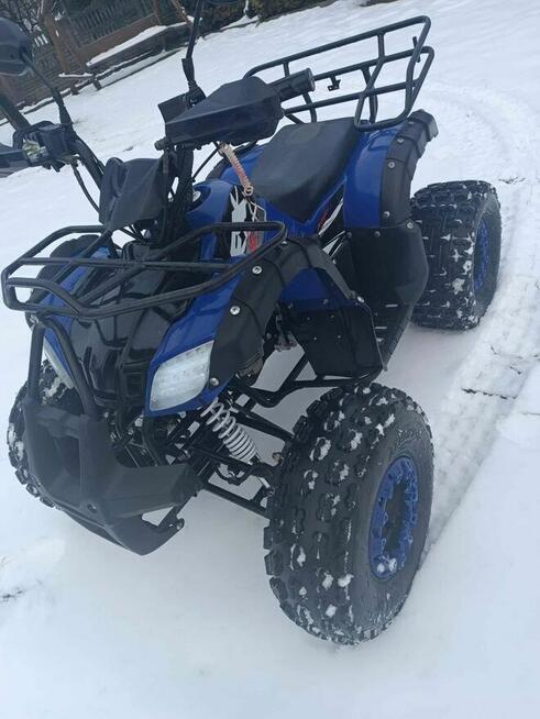 Nowy quad pojemność 125ccm Pali na dotyk posiada alarm , odpalanie z pilota, ledowe światła soczewkowe. Skrzynia 3+1 jest ...