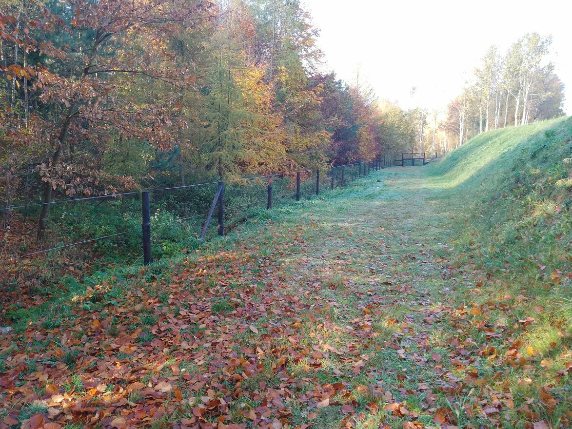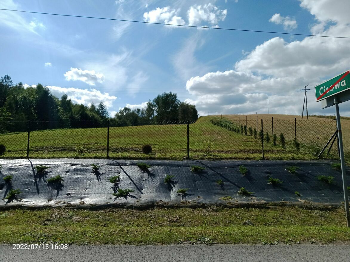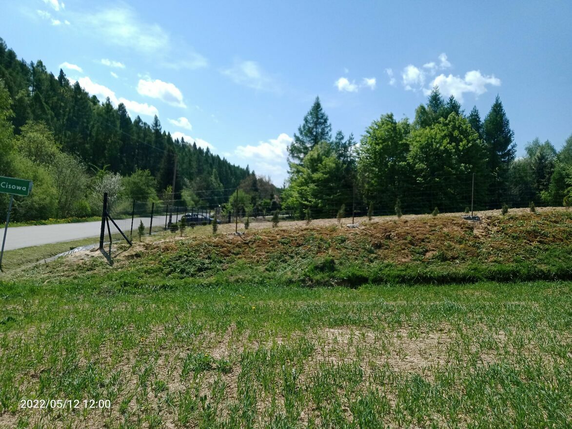 Ogrodzona tymczasowym ogrodzeniem z siatki leśnej.
