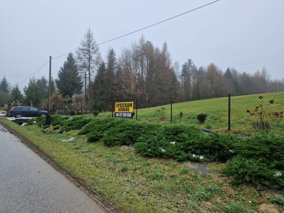 Z przodu działki piękny widok na zalesioną górę.
